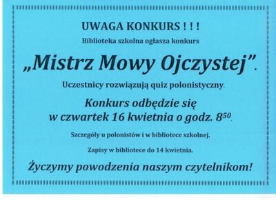 Biblioteka wraz ze Stowarzyszeniem "Przyjaciół Ekonomika" organizuje konkurs "Mistrz Mowy Ojczystej".